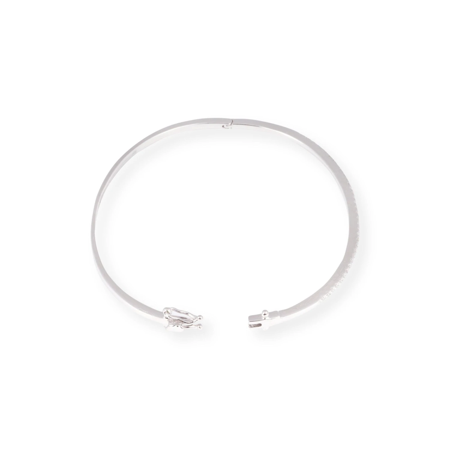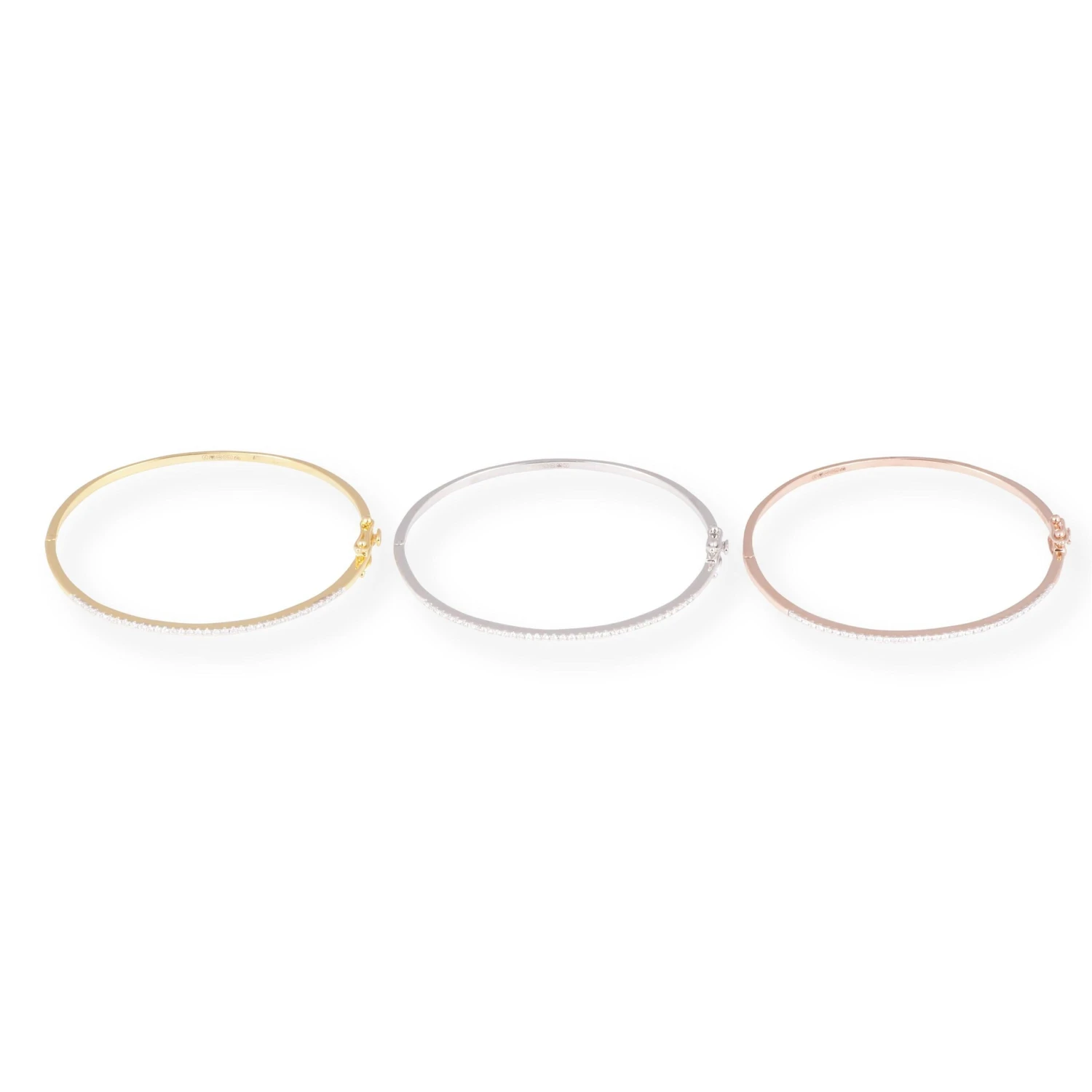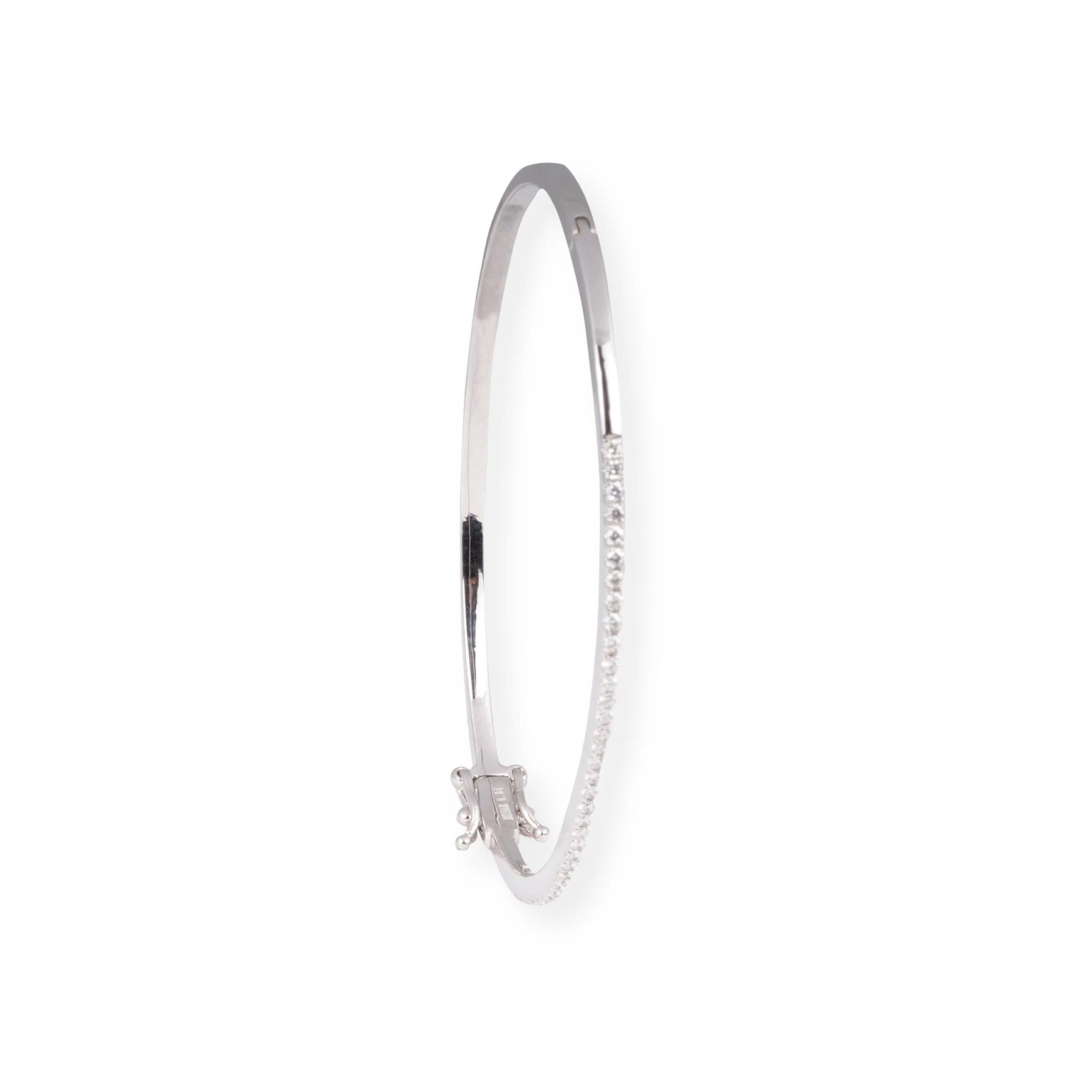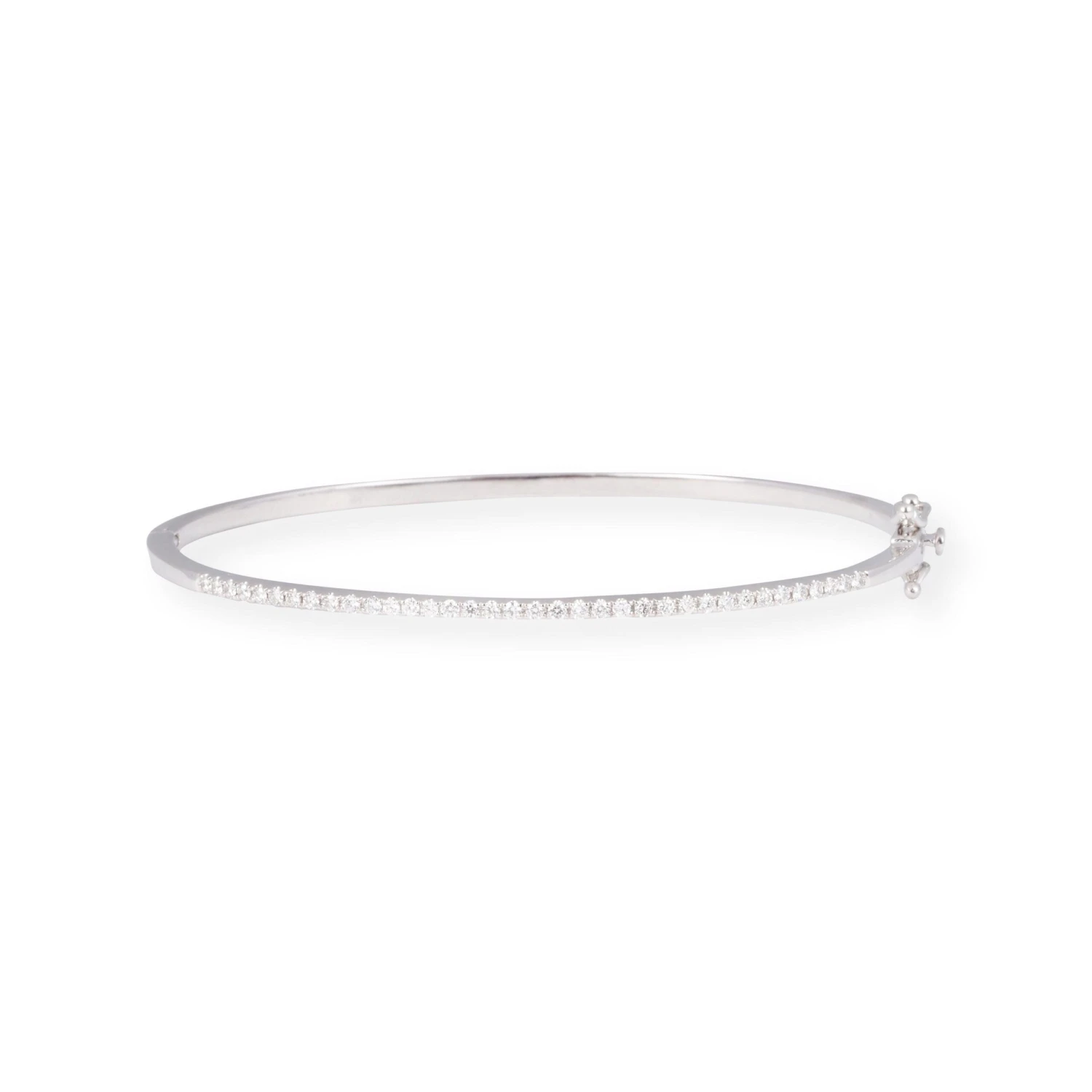 This timeless gold bangle with diamonds combines the classic allure of 18ct gold with a contemporary openable design. The bangle’s innovative clasp allows for easy wear while maintaining a secure fit, making it a practical yet sophisticated choice for any jewellery collection. Its versatile design complements both traditional and modern outfits, making it an ideal gift for yourself or a loved one.