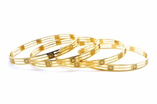 These 22ct gold bangles are enhanced with rhodium-plated detailing, adding a touch of contrast and brilliance to their traditional design. The elegant craftsmanship makes them versatile enough for festive occasions while remaining refined for everyday wear. A classic addition to any jewellery collection.