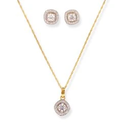 This 22ct gold suite includes a finely crafted chain, pendant, and matching earrings, all accented with dazzling cubic zirconia stones for a radiant finish. The harmonious design ensures a coordinated look, blending traditional elegance with modern sparkle. Perfect for gifting or elevating your own jewellery collection.