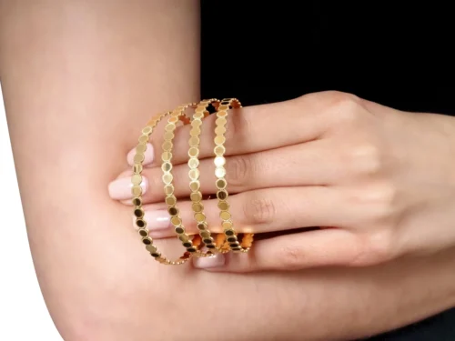 Set Of Four 22ct Gold Bangles With Flower Design And Filigree Work – Elegant 22ct Gold Bangles