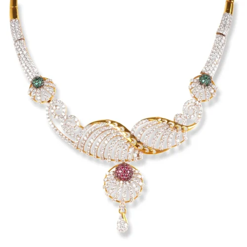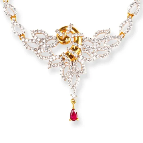 22ct Gold Necklace Set With Swarovski Zirconia’s And Red Stones – NS14058