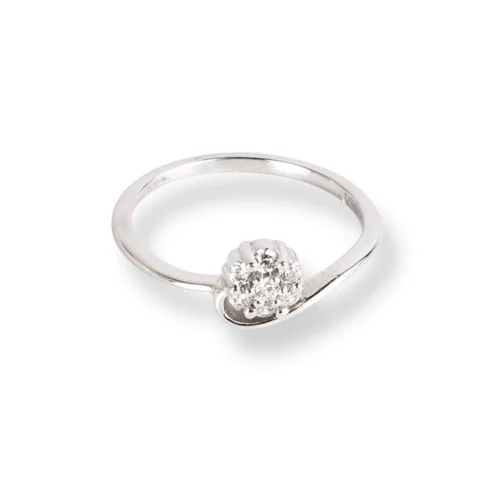 18ct White Gold Diamond Ring With Flower Design LR-6664
