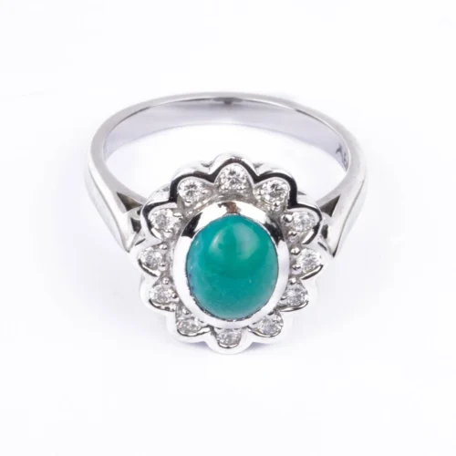 22ct Gold Pendant & Earrings Set With Turquoise Stone And Cubic Zirconia Halo