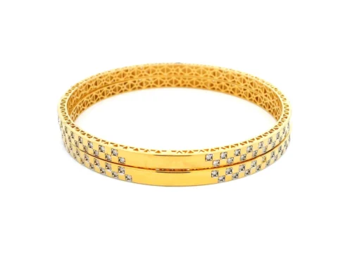 Pair Of 22ct Yellow Gold Bangles With Sparkling Cubic Zirconia Stones | Elegant Jewellery Set