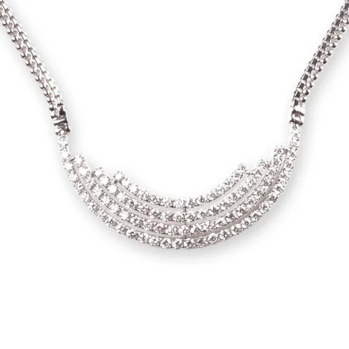 18ct White Gold Bar Necklace & Earrings Set With Pavé Cubic Zirconia Design