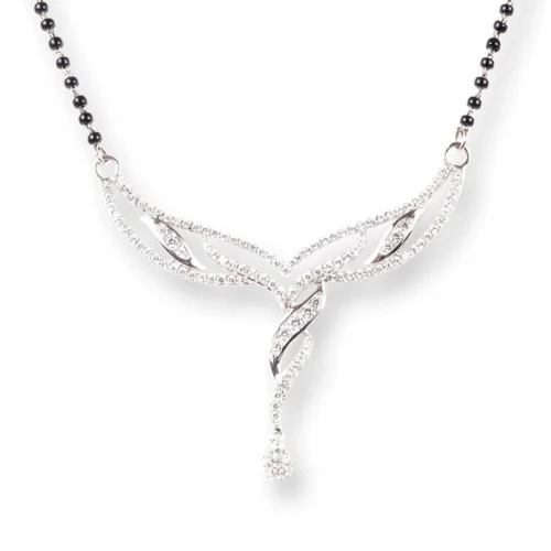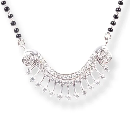 18ct White Gold Adjustable Mangal Sutra With Cubic Zirconia & Lobster Clasp MS-4435