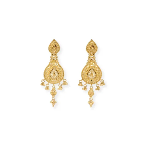 22ct Gold Long Haram Necklace & Earrings Set – Triple Layer Filigree Design