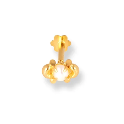 18ct Yellow Gold Screw Back Nose Stud With Cultured Pearl.