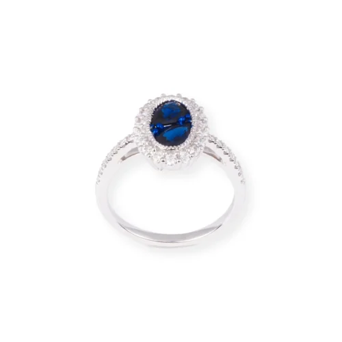 18ct White Gold Oval Shaped Diamond & Blue Sapphire Ring LR-7044