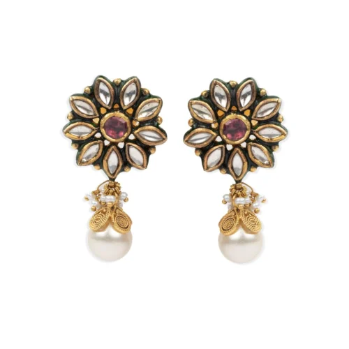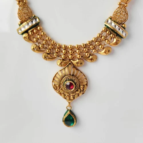 22ct Gold Antiquated Look Necklace And Earrings Set With Cubic Zirconia Stones